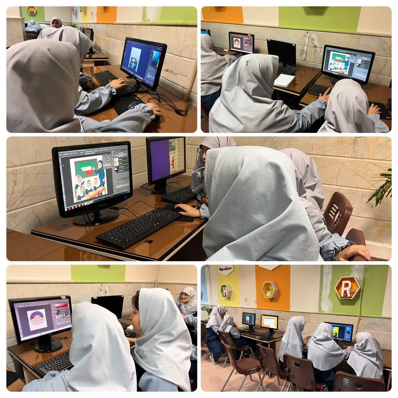حضور دختران علاقه مند به کار با کامپیوتر و برنامه های کاربردی در سایت دبستان در کارگروه رسانه و فضای مجازی